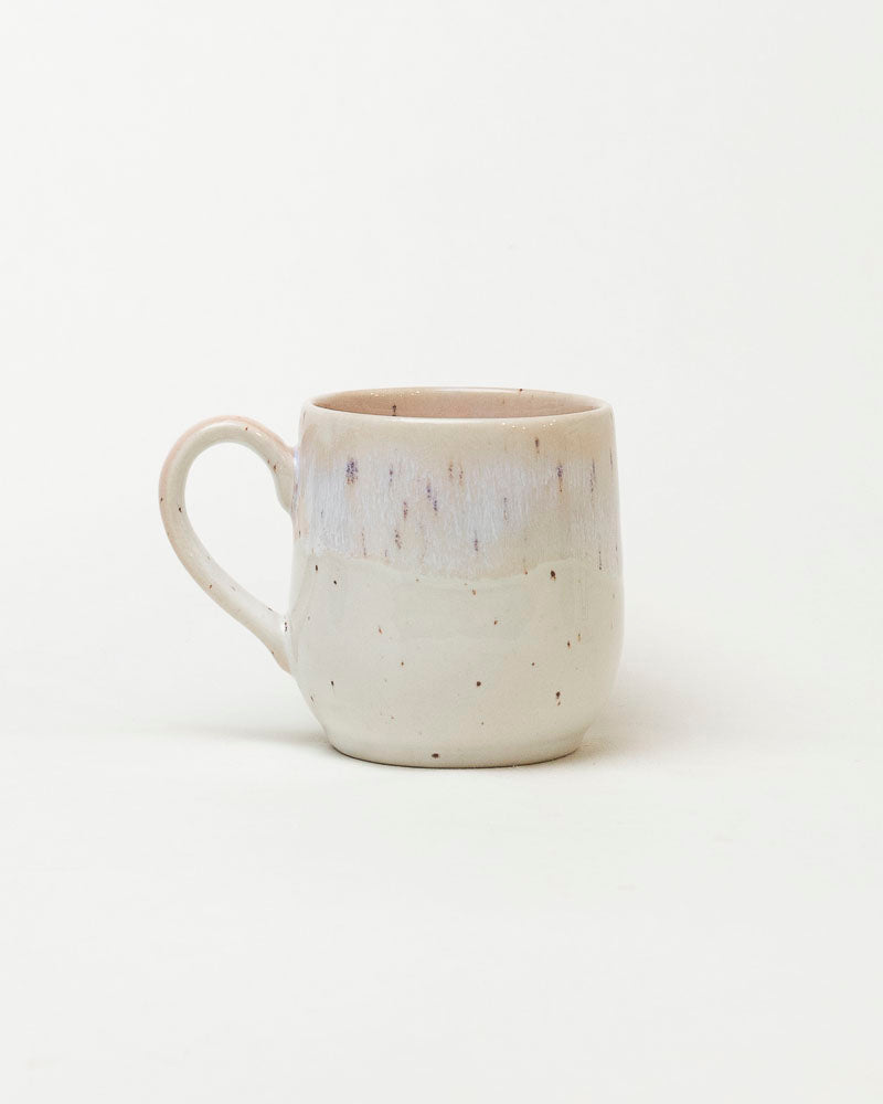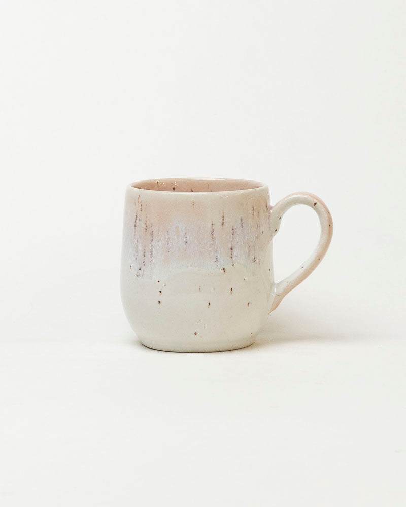 Delikatny jak poranna mgła — subtelne przejścia bieli, ecru i lekko różowego tonu układają się w spokojną, wyciszającą kompozycję. Dyskretne kropeczki gliny przebijające spod szkliwa dodają mu naturalnego uroku, a ręczne szkliwienie sprawia, że każdy egzemplarz jest inny, jakby malowany miękkim światłem.