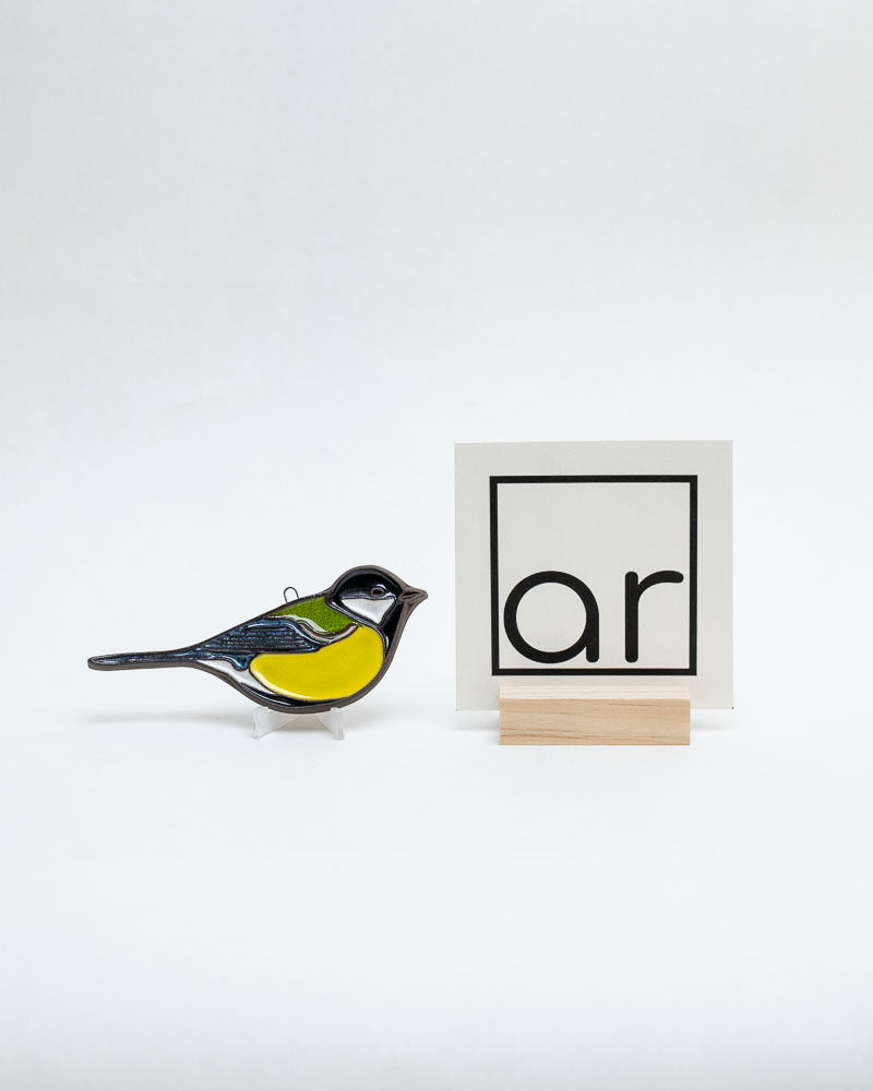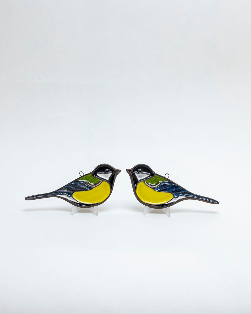 Ceramiczna ozdoba ścienna przedstawiająca sikorkę, dostępna w dwóch wersjach: patrzącą w lewo oraz patrzącą w prawo. Wykonana z ceramiki szkliwionej w odcieniach żółtym, zielonym, granatowym i czarnym. Wyposażona w uchwyt do powieszenia. Stanowi barwny akcent, który dobrze prezentuje się w domu, pracowni lub pokoju dziecięcym.