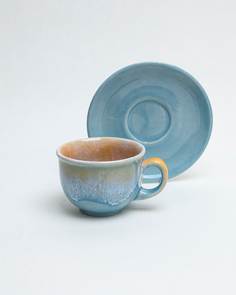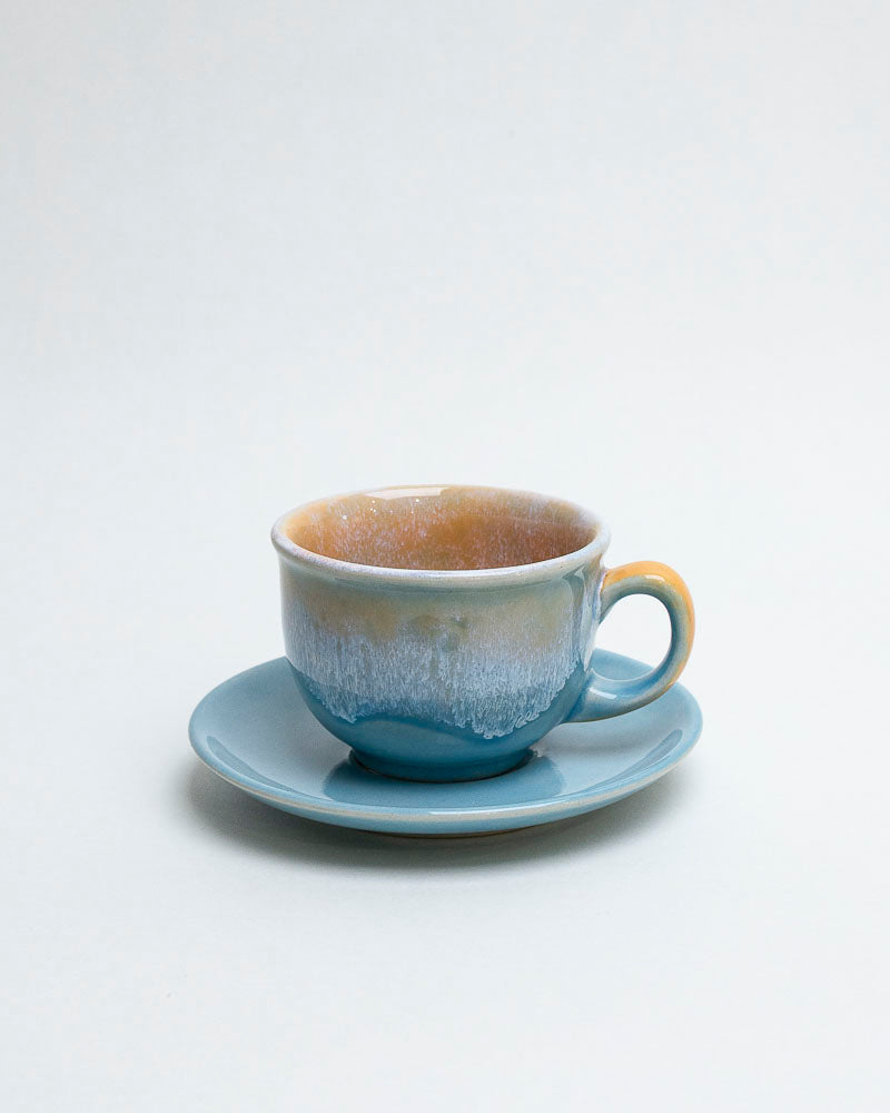 Lekka jak pierwsze promienie słońca, które delikatnie muskają powierzchnię jeziora. Jej błękit przechodzi w miękkie odcienie miodu i bieli, jak poranna mgła rozświetlana światłem dnia. Filiżanka, która wprowadza spokój i harmonię w rytuał picia kawy.