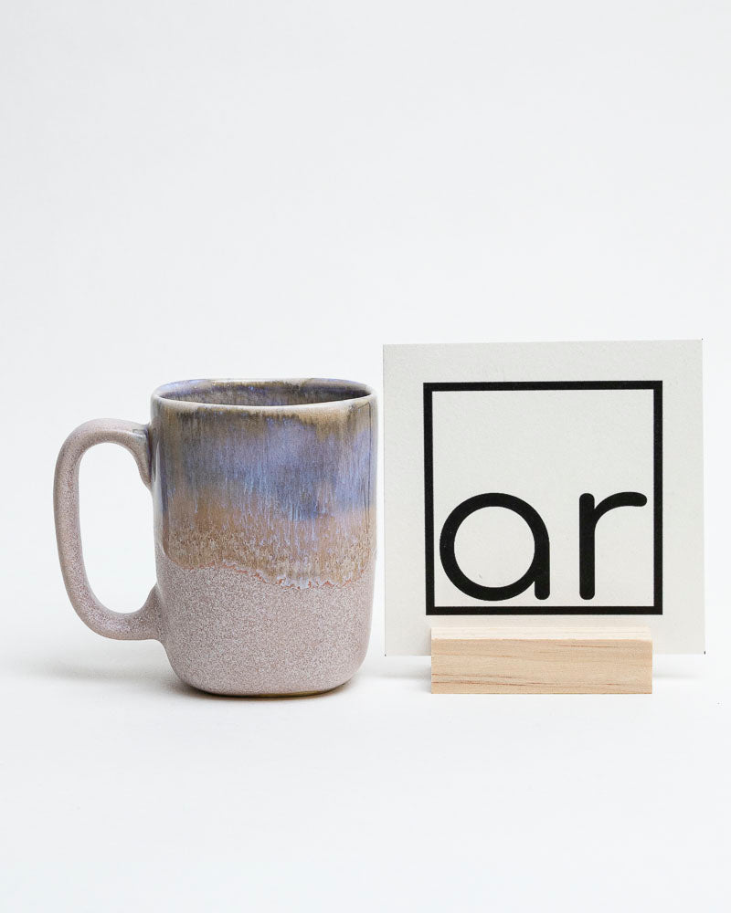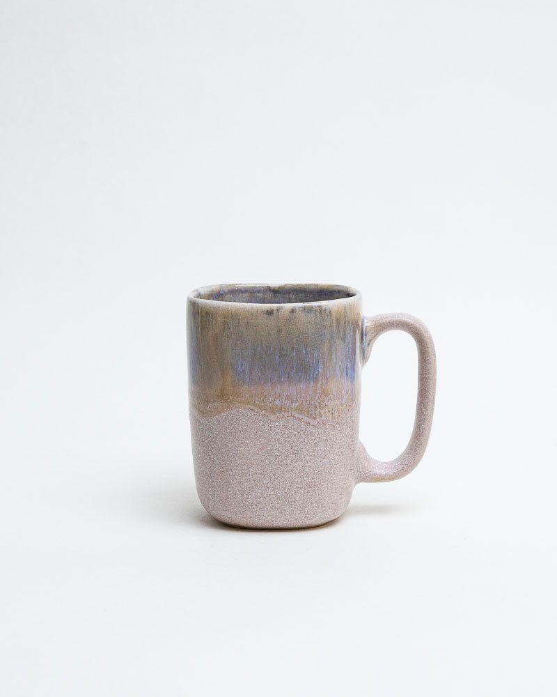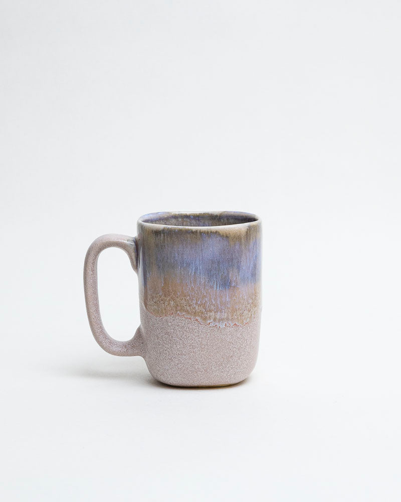 Jak pierwszy oddech dnia — delikatny, cichy, pełen światła przesianego przez chmury. W barwach tego kubka spotykają się beżowe tony piasku i zgaszony błękit mgły. Matowa faktura dolnej części kontrastuje z górnym, lekko połyskującym szkliwem, które przypomina niebo budzące się po deszczu.