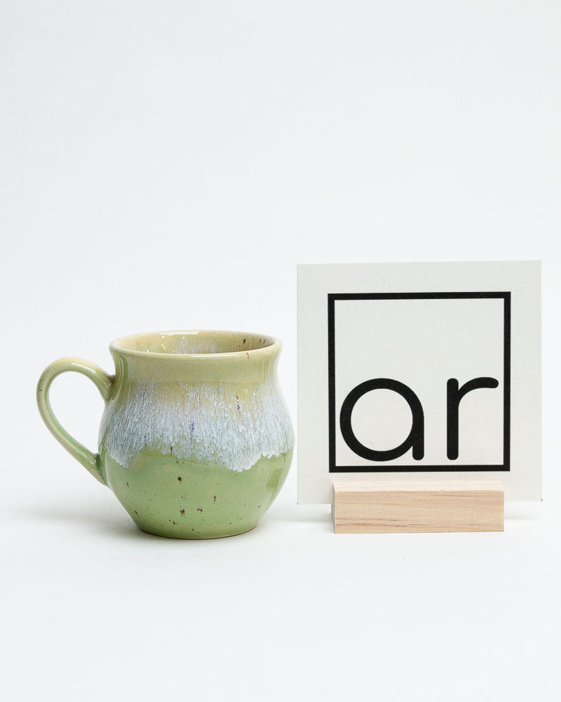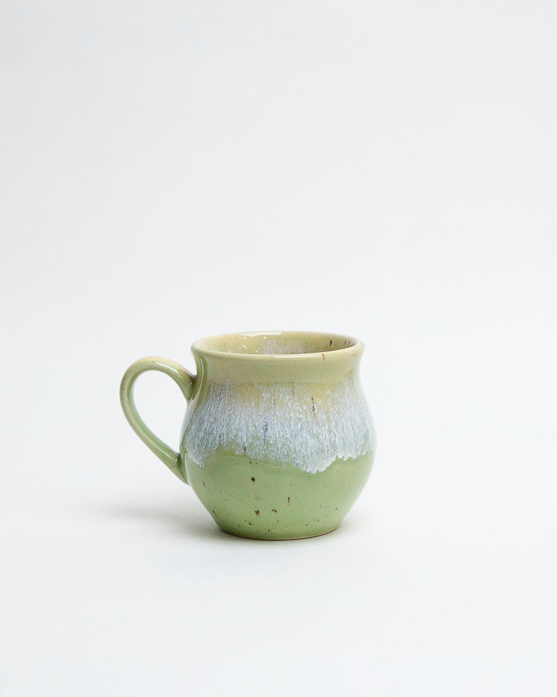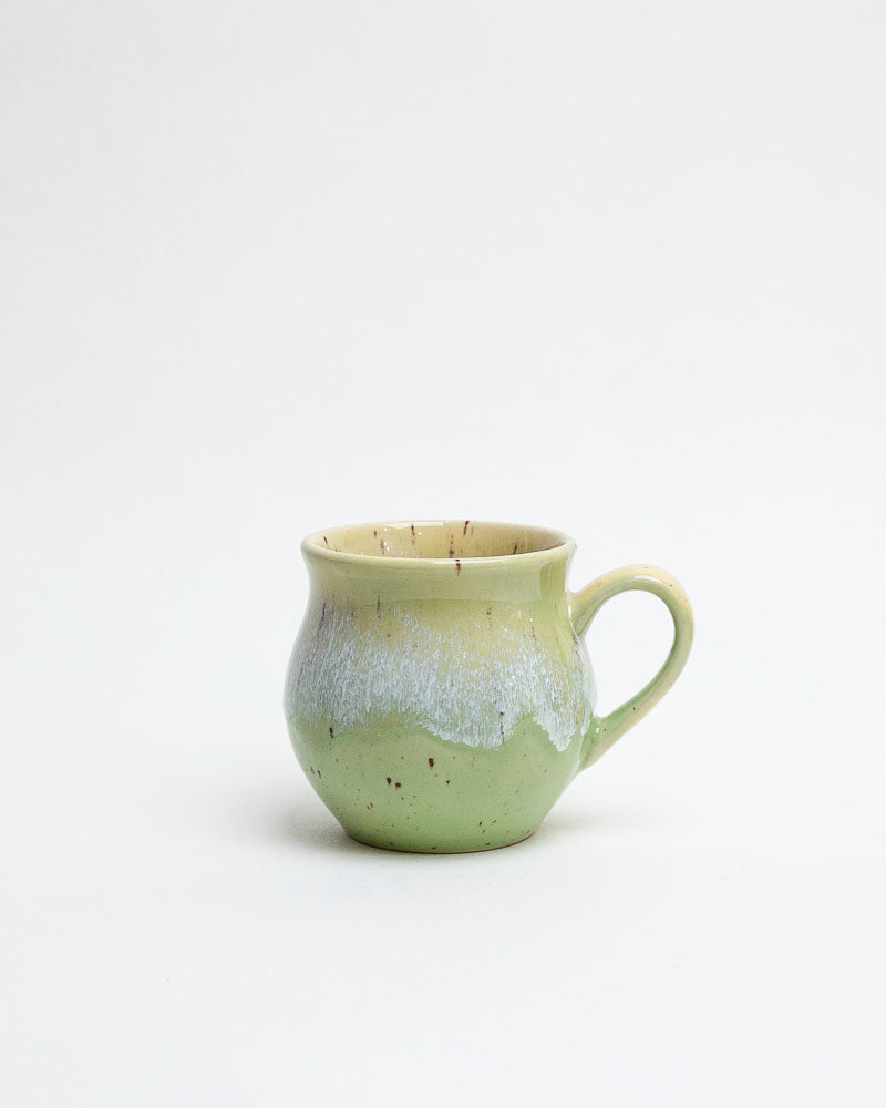 Jak świeży pąk o świcie — delikatny, pełen życia i harmonii. W jego barwach spotykają się odcienie młodej zieleni i miodowej żółci, spływające ku dołowi niczym promienie słońca po liściu. Matowo-błyszczące przejścia szkliwa dodają mu miękkości i naturalnego wdzięku.