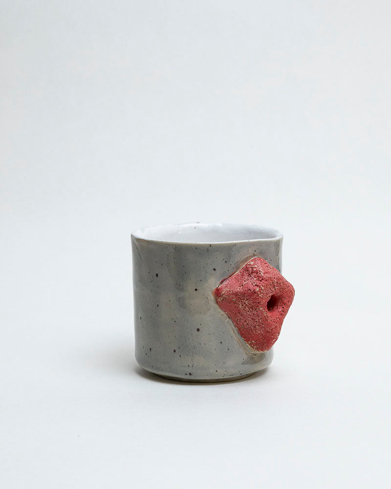 Minimalistyczny i surowy jak chłodny poranek pod skałą. Szara powierzchnia przypomina strukturę granitu, a czerwony uchwyt – jakby wyrwany prosto z bulderowni – kusi dłonie, by sprawdziły jego fakturę. To kubek dla tych, którzy wiedzą, że nawet chwila odpoczynku może być treningiem chwytu.