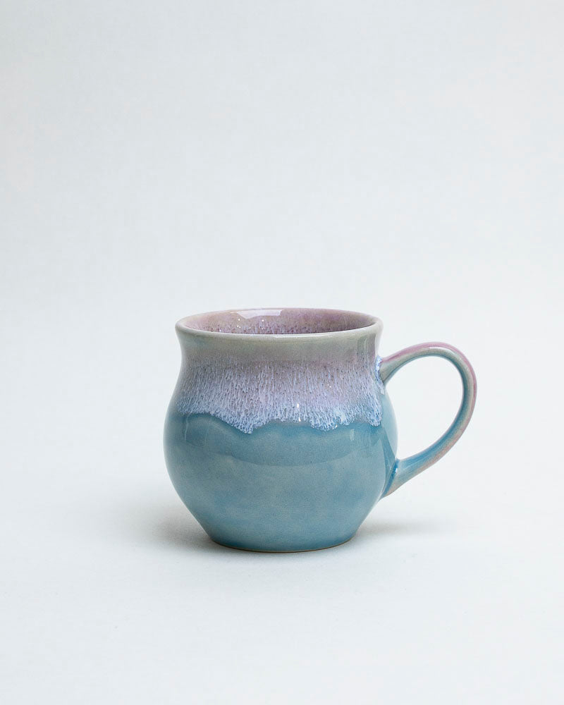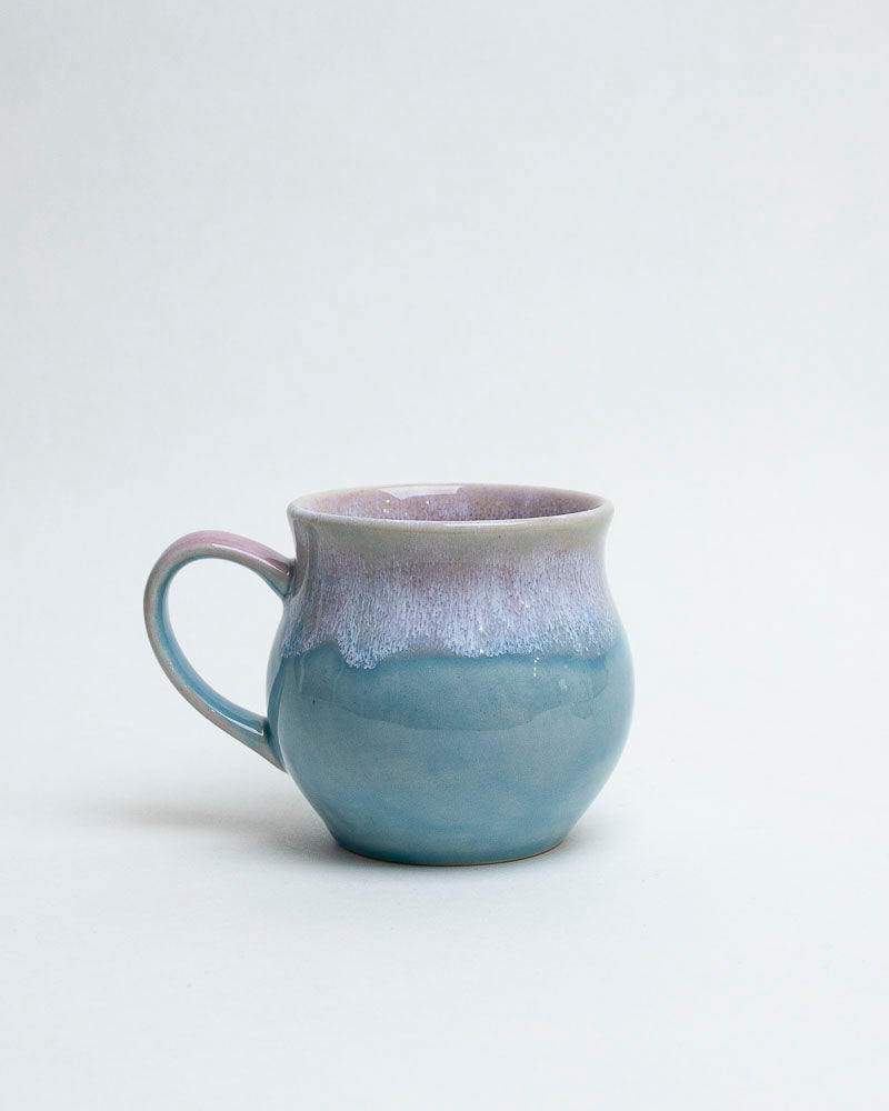 Jak wieczorne niebo nad wodą, gdy błękit powoli ustępuje miejsca chłodnemu fioletowi. Szkliwo spływa miękko, tworząc subtelne przejścia barw przypominające granicę między dniem a snem. Delikatny połysk nadaje mu głębi, jakby w jego wnętrzu odbijało się światło księżyca.